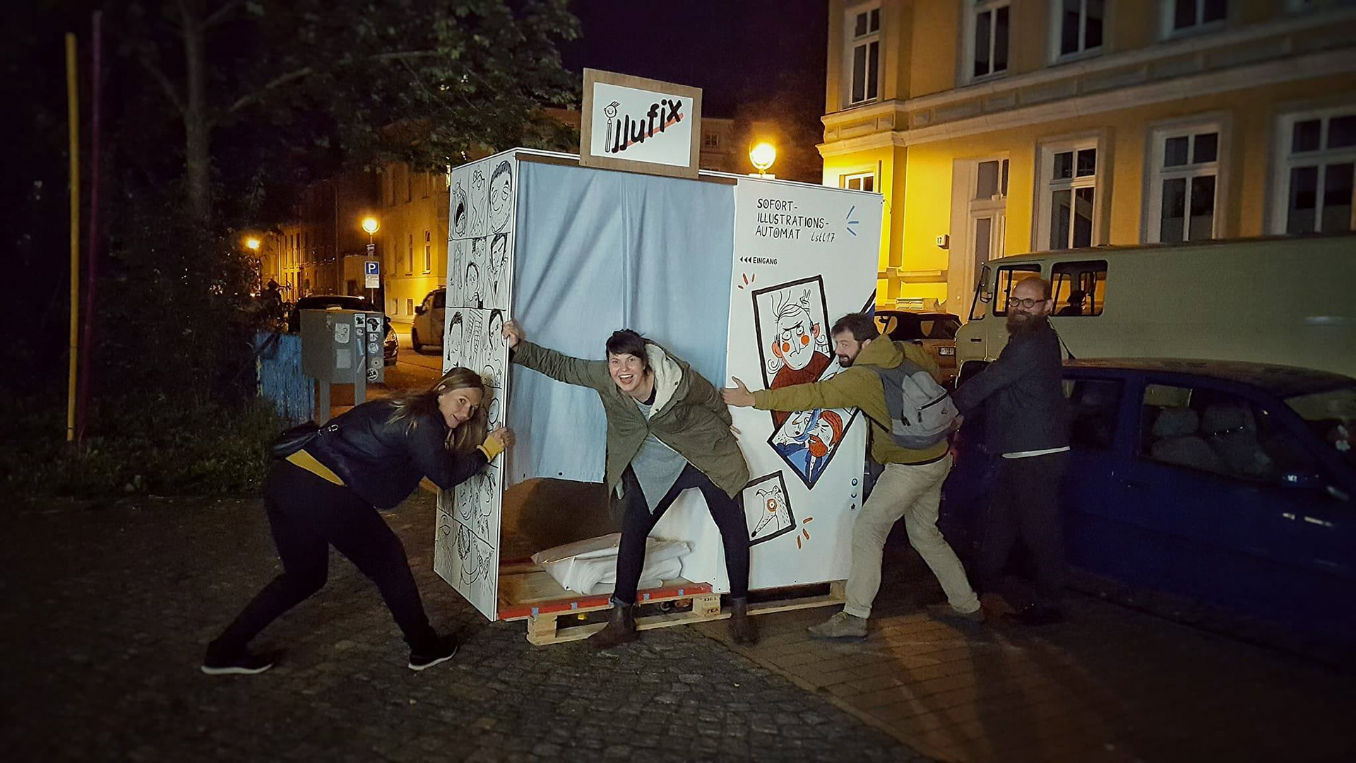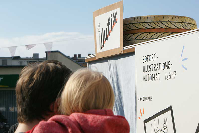 Der Illufix-Illustrationsautomat, die bekannte Erinnerungsmaschine mit gezeichneten Fotos! Reinsetzen, fröhlich schauen, Knopf drücken und ein tolles Andenken mitnehmen!